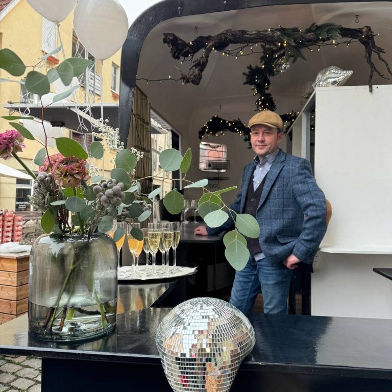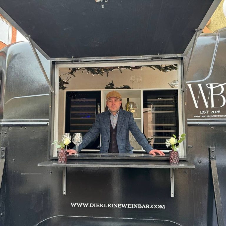 und habe mir mit dieser kleinen, mobilen Weinbar einen Herzenswunsch erfüllt. Ich liebe gute Gespräche, entspannte Abende und natürlich ein Glas Wein in netter Gesellschaft. Mit meiner Bar möchte ich genau das möglich machen: besondere Momente schaffen – ob auf Hochzeiten, Geburtstagen oder einfach da, wo man das Leben feiert.